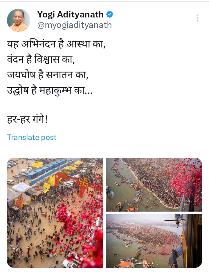 महाकुंभ 2025 की शुरुआत पौष पूर्णिमा स्नान के साथ 13 जनवरी से आरम्भ हो चुकी है। इस पहले शाही स्नान के दिन अनुमान के मुताबिक करीब डेढ़ करोड़ श्रद्धालुओं ने आस्था की डुबकी लगाई है। यूपी के मुख्यमंत्री योगी आदित्यनाथ ने ट्वीट करते हुए इस बात की जानकारी दी है। गौरतलब है कि इस बार का कुंभ डिजिटल कुंभ के नाम से भी जाना जाएगा, क्योंकि डिजिटल रूप से मेला क्षेत्र की सारी जानकारी ली जा सकती है। पहले स्नान के दिन मेला श्रद्धालुओं पर आसमान से फूलों की बारिश की गई।